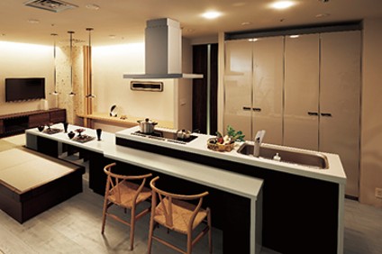 また、高さはキッチン台だけでなく、吊戸棚にも気を配りたいところ。自動昇降タイプなら、身長差も気にせず設置できます。そのほかにも会話がしやすいように対面式キッチンをご提案いたします。