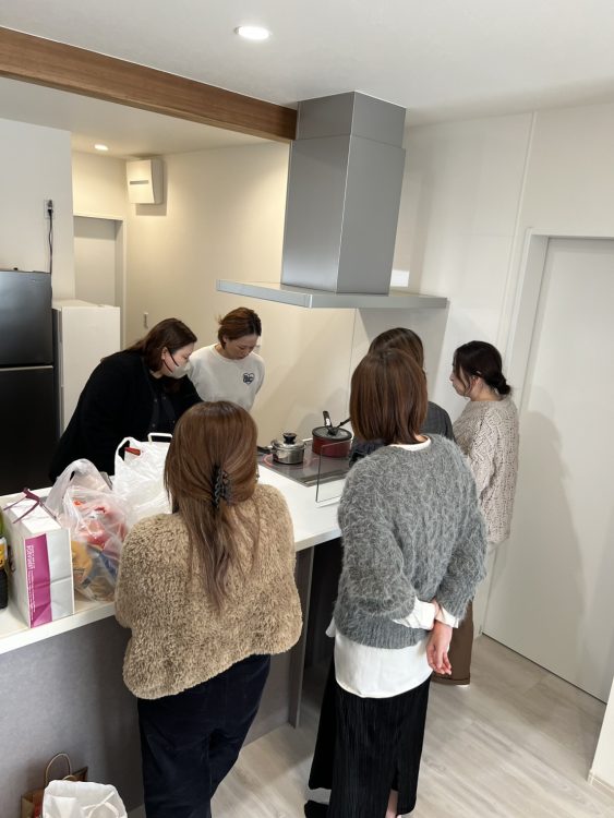 お友達を招いて、お家完成お披露目会も兼ねてお食事会です♬システムキッチンやIHクッキングヒーターの使い心地を体験いただきました。