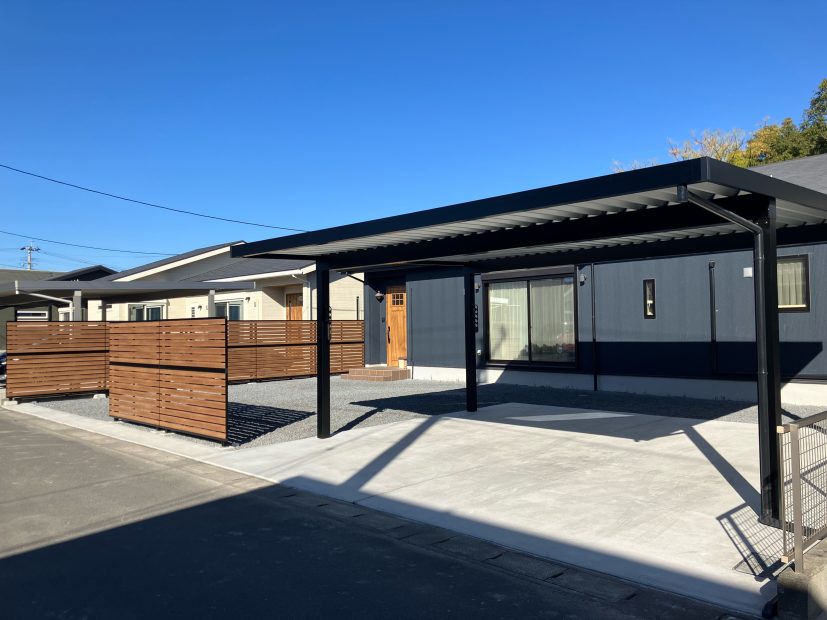 カーポートには耐久性の高いスチール折板屋根タイプを採用しました。特徴としては抜群の強度と遮熱性です!(^^)!